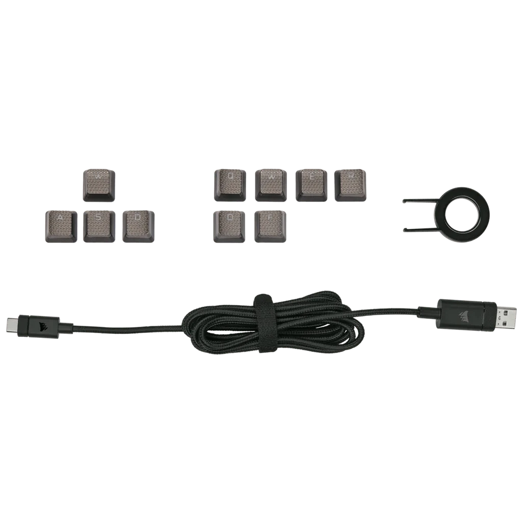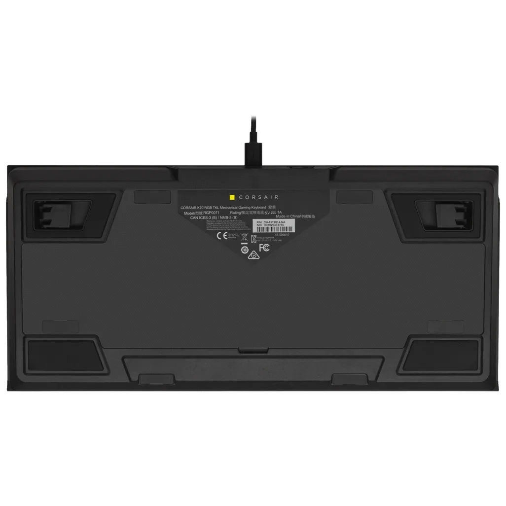 Corsair K70 RGB TKL. Keyboard form factor: Tenkeyless (80 - 87%). Keyboard style: Straight. Connectivity technology: Wired, Device interface: USB, Keyboard key switch: Mechanical, Keyboard layout: QWERTY, Keyboard number of keys: 88. Backlight type: RGB LED. Recommended usage: Gaming. Product colour: Black