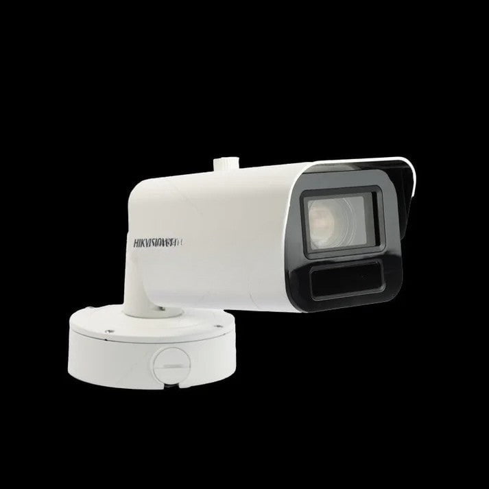 The HIKVISION IP Bullet Camera is designed for advanced surveillance with 4MP resolution and DeepinView AI technology for intelligent detection. Featuring an impressive 200m IR illumination, it ensures clear visibility even in complete darkness. The 4.7-118mm motorized vari-focal lens (MVF) provides flexible zoom options, while the IP67-rated weatherproof design ensures durability in harsh environments.