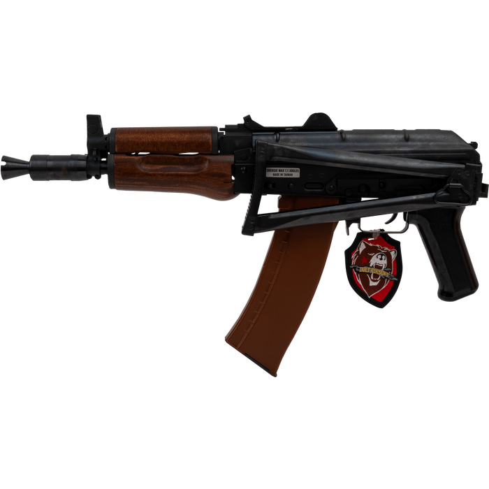 Equipped with a V3 gearbox and a high-quality AEG inner barrel, the AKS-74U delivers superior accuracy and consistency. Its electric blowback (EBB) feature enhances the realism, while the 200-round magazine capacity keeps you in the action longer. The compact design, paired with a T-Dean battery connector and 7.4V Li-Po battery compatibility, ensures easy maintenance and high reliability. Available in a sleek black and wood color scheme, the Kalashnikov AKS-74U is a true homage to the original while offering modern airsoft performance.