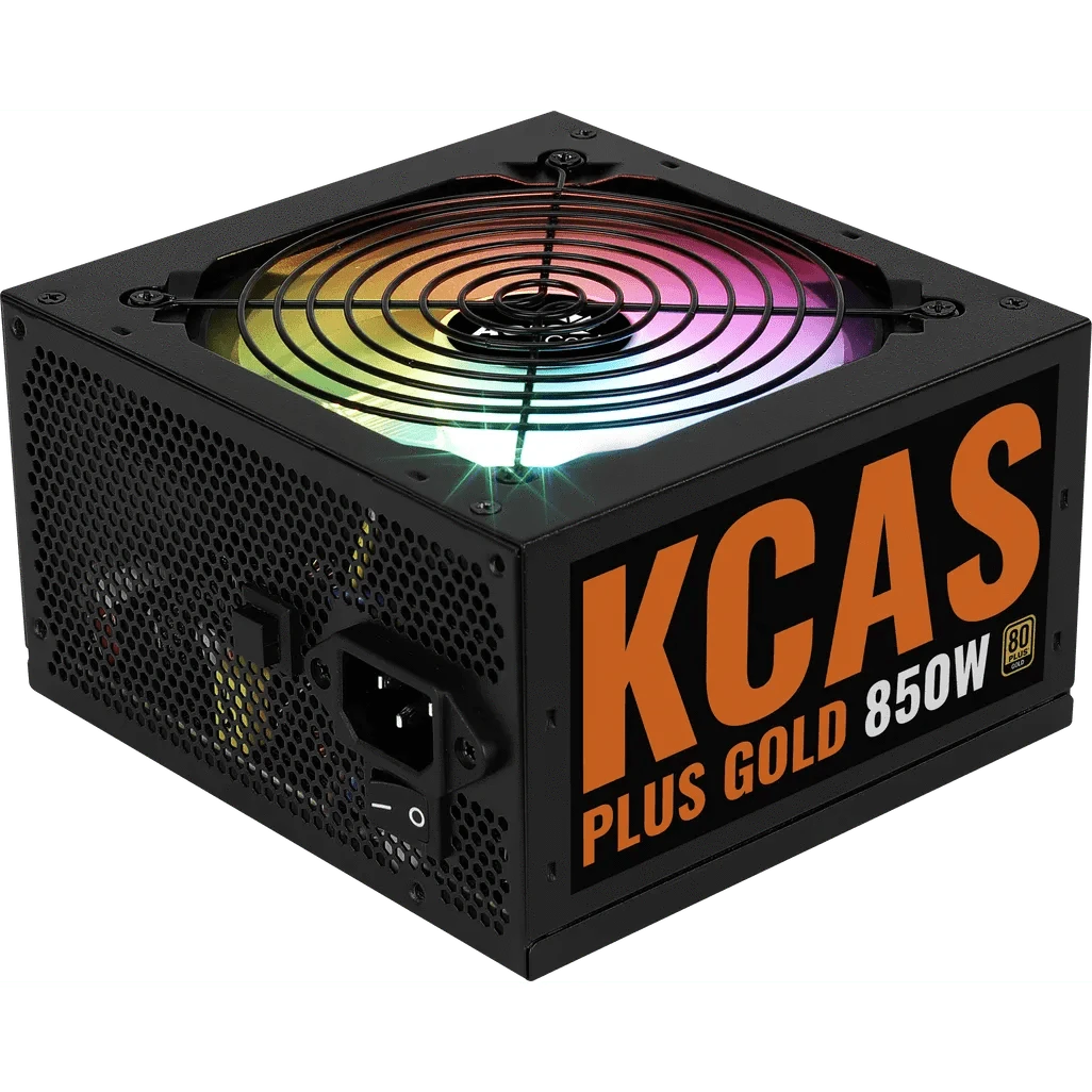 Aerocool KCAS PLUS Gold 850W RGB PSU - ATX 24 PIN; 2x 4+4PIN CPU; 8x SATA; 4x PATA; 3x PCIe 6+2PIN.