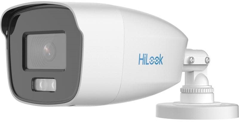 HiLook 2 MP ColorVu Bullet Camera - High quality imaging with 2 MP, 1920 × 1080 resolution, 24/7 color imaging with F1.0 aperture, 3D DNR technology delivers clean and sharp images, 2.8 mm, 3.6 mm fixed focal lens, Up to 40 m white light distance for bright night imaging, One port for four switchable signals, Water and dust resistant, Retail Box, 6 Months Warranty
