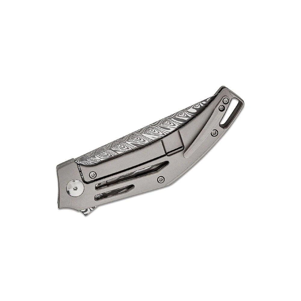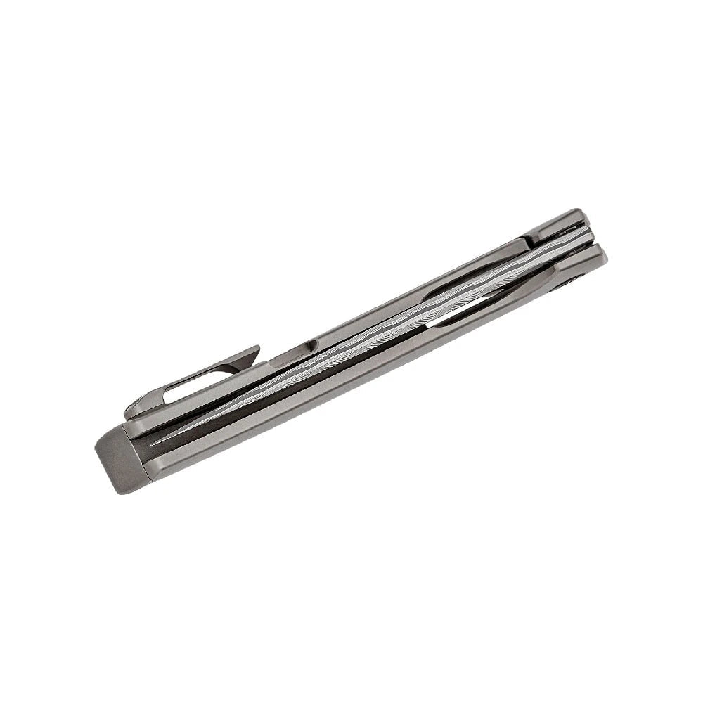 Elevate your everyday carry with the WE Knife Company Speedliner, a masterpiece of precision and craftsmanship. Designed by the visionary Tashi Bharucha, this folding knife blends cutting-edge materials with an ergonomic and stylish form factor. Featuring a Hakkapella Damasteel blade, the Speedliner delivers superior sharpness, durability, and an eye-catching aesthetic that sets it apart. Its gray 6Al4V titanium handle ensures a lightweight yet robust grip, while the frame lock mechanism guarantees steadfast blade security.