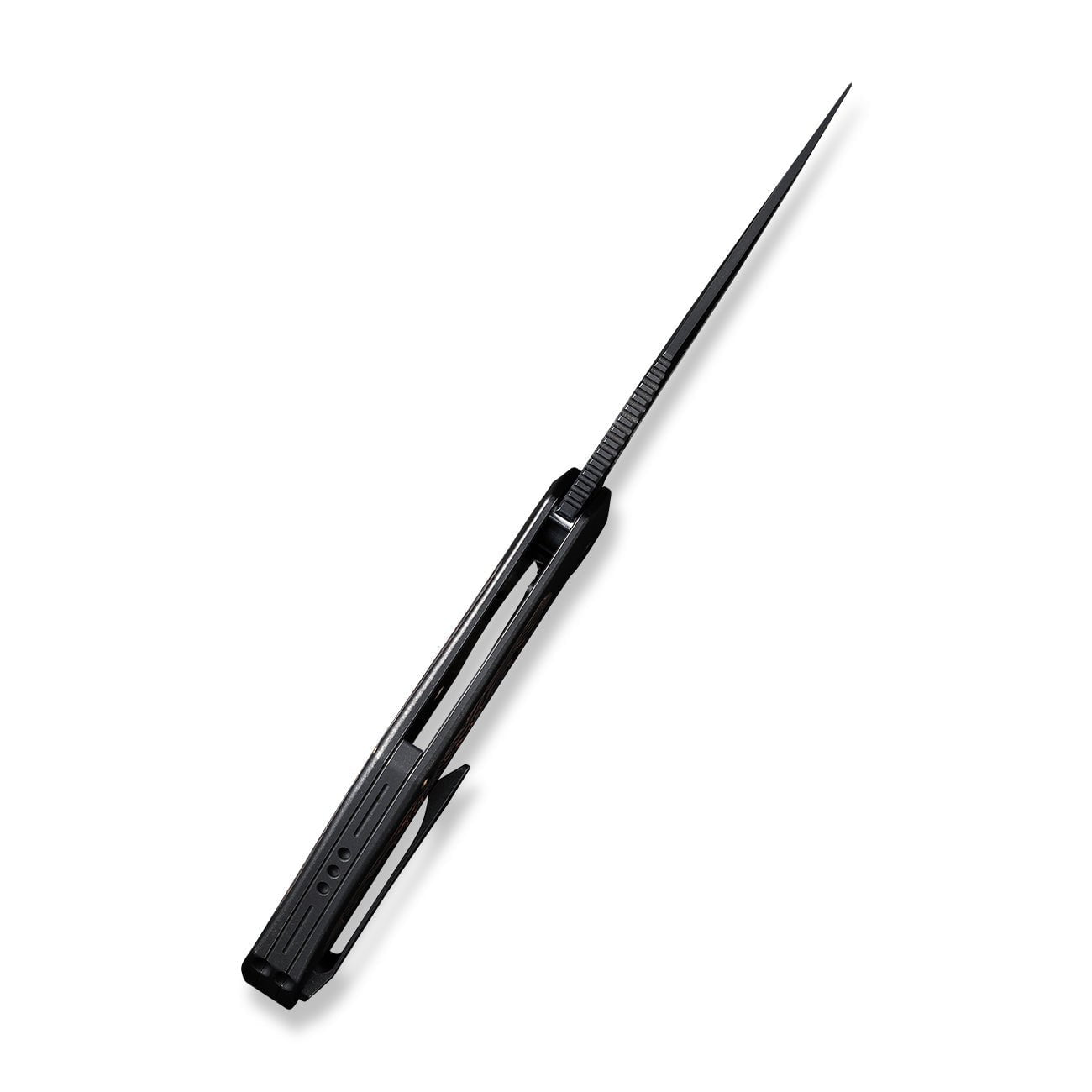 Blade Finish: Black Stonewashed Bevels, Black Brushed Flats