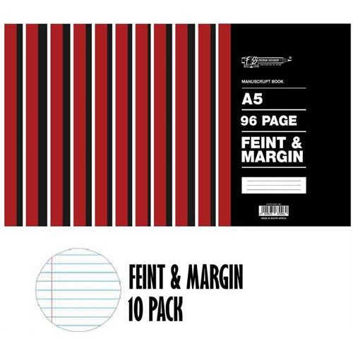 Freedom 96 Page A5 Manuscript Book – Hard Cover, Stitched and Glued, Feint Ruled with Margin, Pack of 10, No Warranty