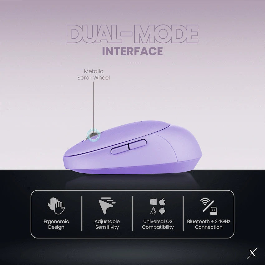 The VolkanoX Crater Bluetooth Wireless Mouse is built for users who demand flexibility, precision and comfort. Whether you're working, gaming or browsing, it delivers with dual?mode connectivity (Bluetooth + USB?C/2.4?GHz receiver), adjustable DPI up to 4000, and whisper?quiet buttons with a premium metal scroll wheel. Its ergonomic shape ensures comfort during long sessions, and the large internal 500?mAh battery supports up to 6 months of use between charges.Backed by a 3?year limited warranty, the Crater is not just about specs - it's about reliability. With compatibility across Windows, macOS, Linux and Android, it's a versatile tool for home, office or travel setups.