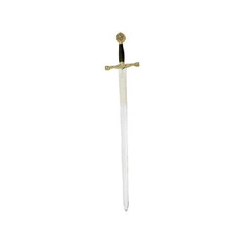 The history and legend of the King Arthur is intimately linked to the magic and mysterious sword Excalibur and as Merlin said, only one able to remove the sword from the stone, would be king. The Marto Deluxe Gold Excalibur commemorates the literary heroes of the classic adventures of King Arthur and the Knights of the Roundtable. The intricately detailed Gold Zamak plated hilt features heraldic winged dragons, surrounded in beautiful celtic knot work within a foundation of applied blue. The low maintenance stainless steel blades are mirror polished, and feature King Arthur’s venerated insignia etched in gold adding yet more intricate complexity to the swords legendary character. Each Ecalibure sword is blade stamped with Marto Toledo Seals of authenticity and come boxed with Marto certificates of Origin and Quality. Exemplary of Marto’s world-renown quality, every Marto Excalibur is a sought-after addition to any sword enthusiast’s collection.