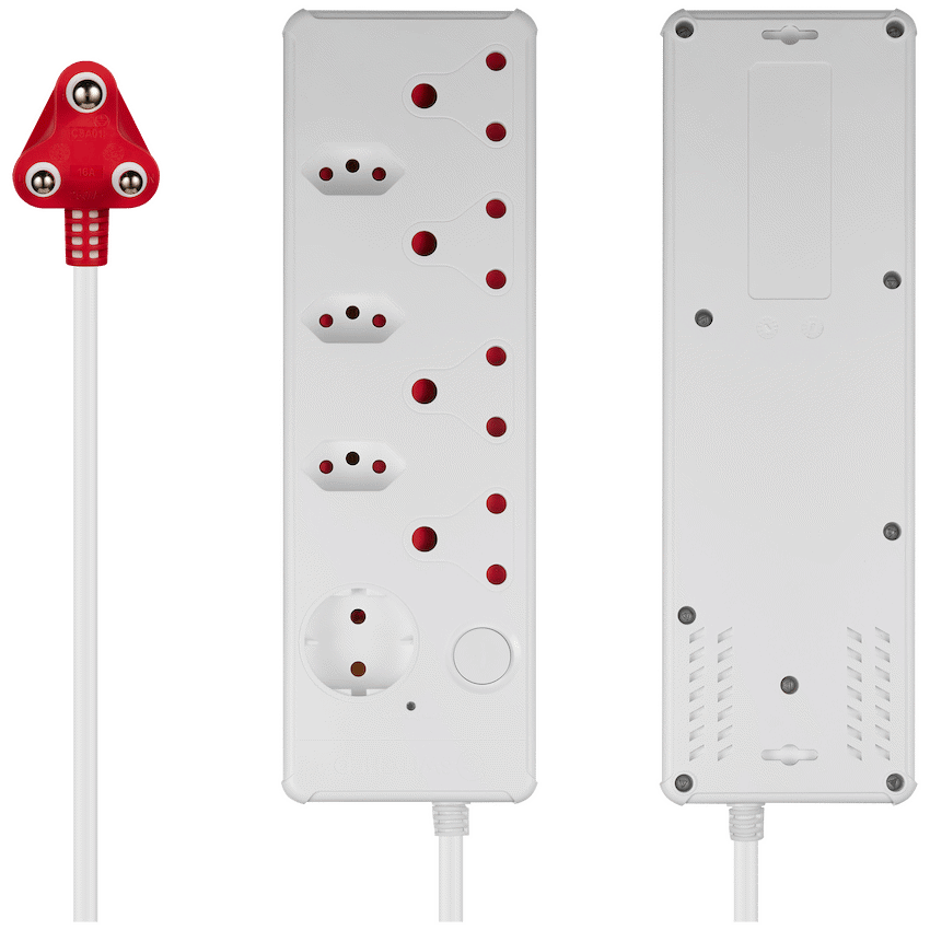 Simplify your power setup with the Switched Medium Surge 8-Way Multiplug - 0.5M, a compact and efficient solution for homes, offices, and workspaces. This multiplug with overload protection supports up to 8 devices with a mix of South African and international sockets-all protected by 375J surge protection and a built-in overload reset button.Designed for safety and convenience, it features 4 standard 3-pin sockets, 3 SANS 164-2 sockets, and 1 Schuko socket, making it ideal for local and imported electronics. The short 0.5m cable helps reduce clutter, while safety shutters offer added peace of mind in family and work environments.Perfect for anyone needing a South African multiplug (16A rated) with broad device compatibility and strong protection features.