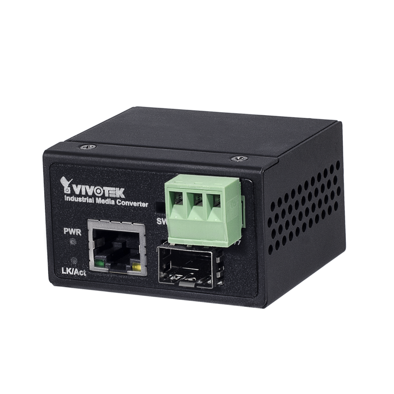 The VIVOTEK Industrial 1×FE + 1×FE SFP Media Converter is a high-performance, rugged networking device designed to extend Ethernet connectivity over long distances using fiber-optic transmission. Engineered for industrial and surveillance applications, this media converter ensures reliable, high-speed data transfer between copper and fiber networks, making it ideal for VIVOTEK IP camera systems and network infrastructure deployments.