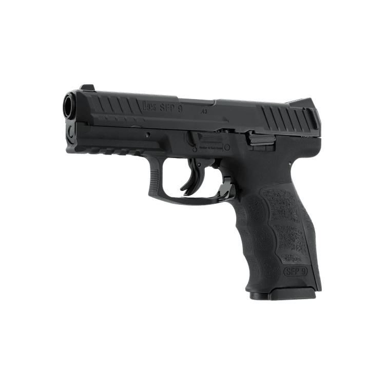The Umarex T4E Heckler & Koch SFP9 is a high-end training pistol engineered to mirror the look, feel and handling of the live-fire VP9/SFP9. Built to provide realistic recoil, true-to-size ergonomics and familiar controls (ambidextrous paddle mag release, slide catch and trigger safety), it’s ideal for force-on-force drills, movement training and muscle-memory development. Optional backstraps and side panels allow you to tailor the grip for an intuitive transition between training and duty pistols.