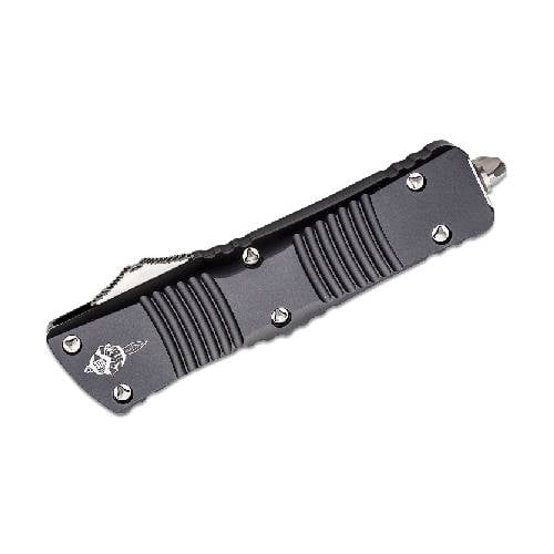 The Microtech 219-10S Combat Troodon Hellhound is a masterfully engineered out-the-front (OTF) automatic knife, built for those who demand reliability and cutting-edge performance. At 25% larger than the standard Troodon, this tactical powerhouse offers a robust build with a contoured handle for a secure grip, ensuring superior control in high-stakes situations. Whether for utility tasks or close-quarters applications, this knife stands out with its aggressive design and precision craftsmanship.