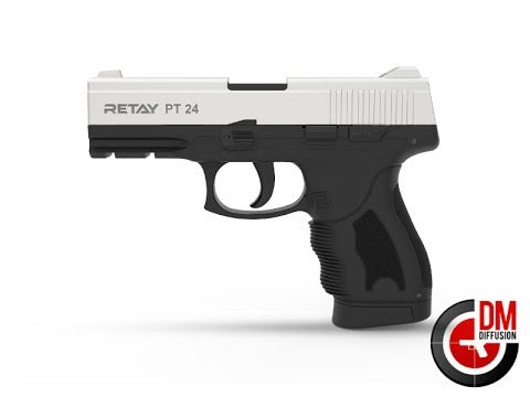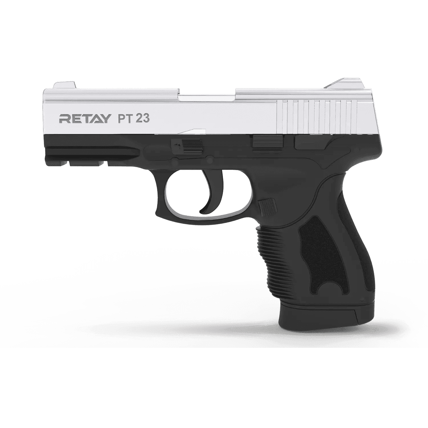 Retay PT23 Mat Chrome Blank/Pepper Gun (Semi Auto|14+1|9mm PAK)