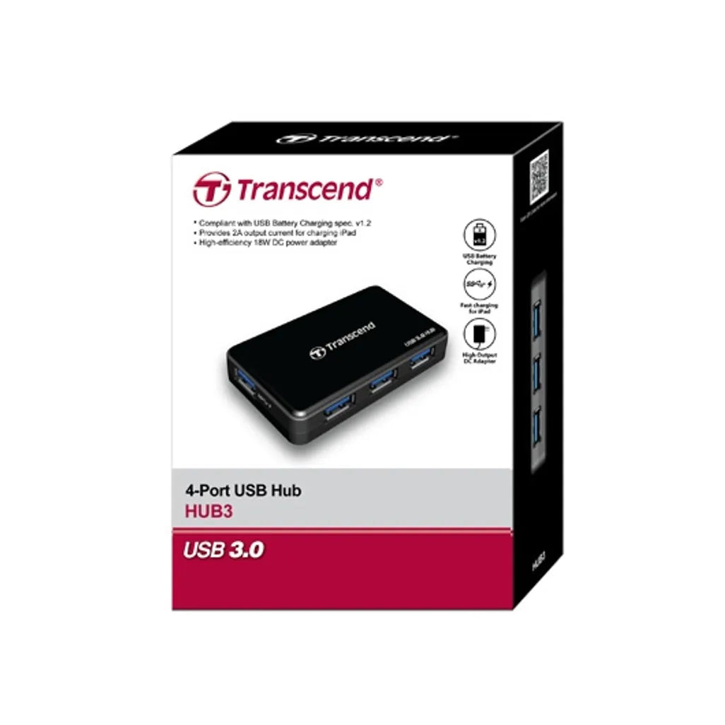 Transcend HUB3, USB 3.2 Gen 1 (3.1 Gen 1) Type-A, Black, CE/FCC/BSMI/KC/RCM/EAC, 5 - 12 V