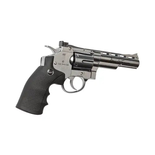 The shortest of the Dan Wesson revolvers is this version with a 4” barrel. This is a beautiful silver plated revolver. The full metal construction gives the revolver a very solid impression and you can immediately feel the quality.