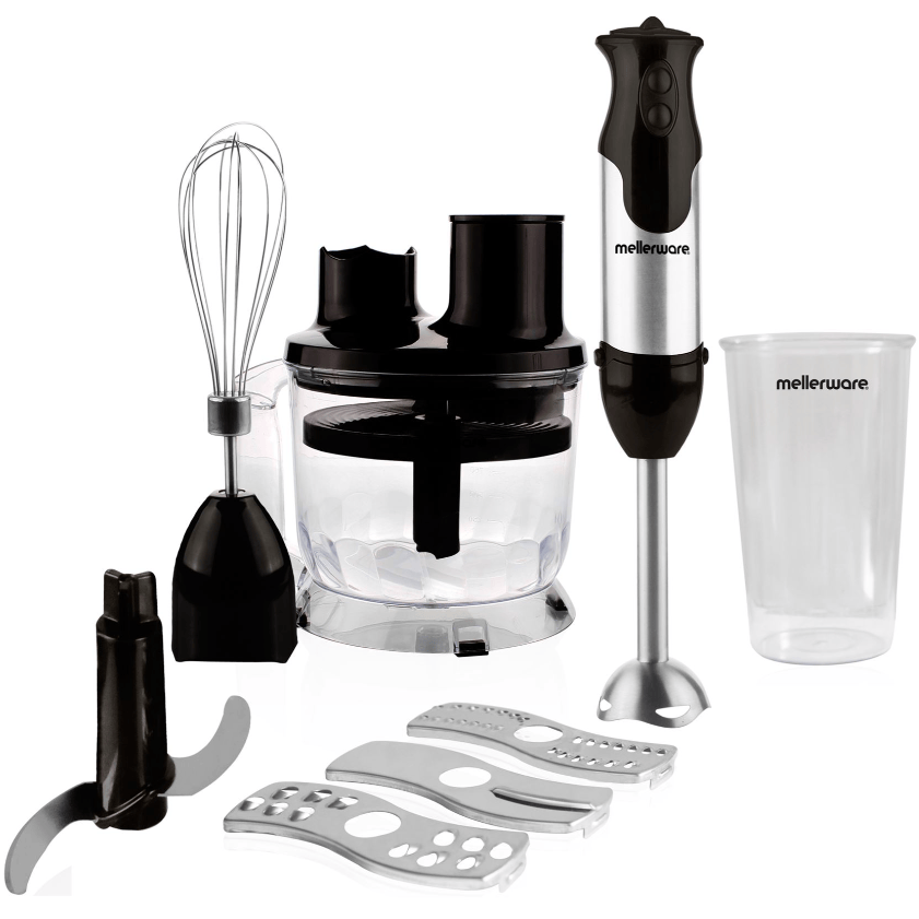 Mellerware 800W Stainless Steel Stick Blender With Attachments "Robot 800" - 800W, Variable speed control, Stainless steel whisk, slicing blades and shaft, 600ml measuring beaker, 1500ml food processor attachment, Turbo function, and 1 year warranty