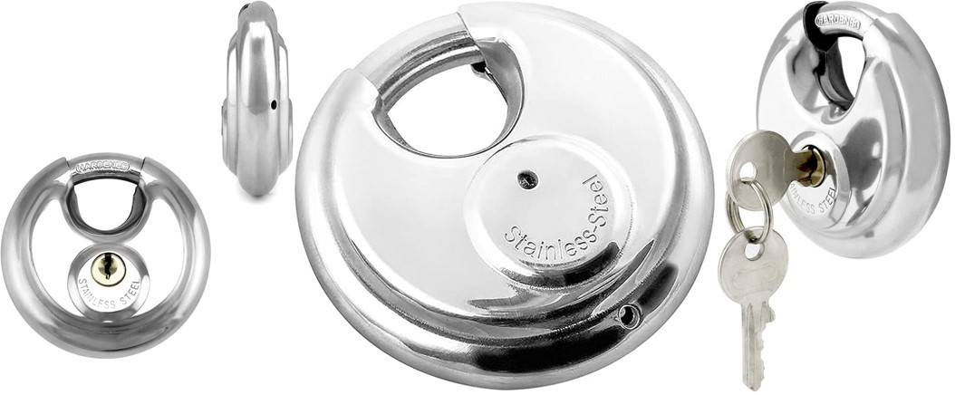 •Package Contents: 1 Disc Padlock, 2 Keys