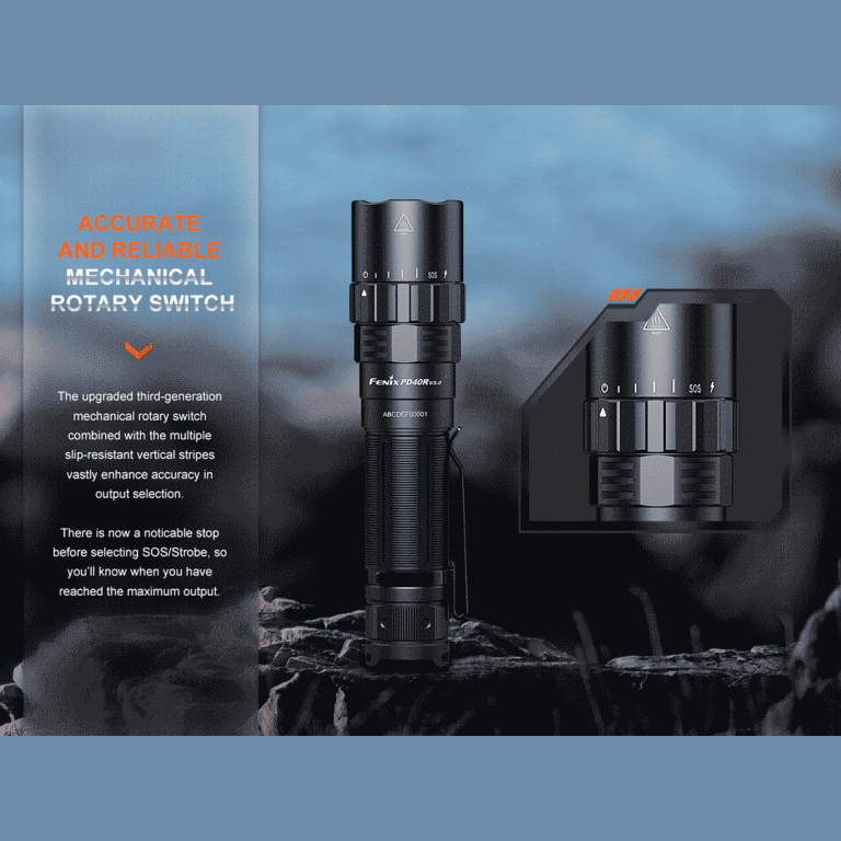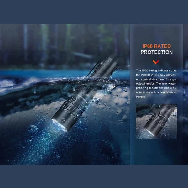 The Fenix PD40R V3.0 Rechargeable Flashlight is a powerful, upgraded tool designed for serious users who need reliability, brightness, and ease of use. Featuring a newly patented rotary mechanical switch, this flashlight allows quick one-handed operation—even with gloves. The raised dial design makes mode selection easy, and a built-in stop ensures you don’t accidentally activate Strobe or SOS when cycling through the 3000-lumen output levels. Now reaching 23% farther than its predecessor, the PD40R V3.0 combines intense brightness with a USB Type-C rechargeable battery system for fast, efficient charging. The no tail switch design enables tail-standing for hands-free use, while the IP68 rating guarantees rugged, waterproof performance in extreme conditions. Made from durable aerospace-grade aluminum, this light is perfect for tactical use, outdoor adventures, or emergency scenarios. Choose the PD40R V3.0 for high output, intuitive controls, and professional-grade dependability.