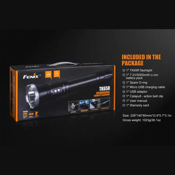 With its rechargeable battery system, the TK65R offers the convenience of extended use without the need for frequent battery changes, while its user-friendly interface allows for easy operation and mode selection. Whether for professional or personal use, the Fenix TK65R combines advanced lighting technology with rugged durability to meet the highest standards of performance and reliability.