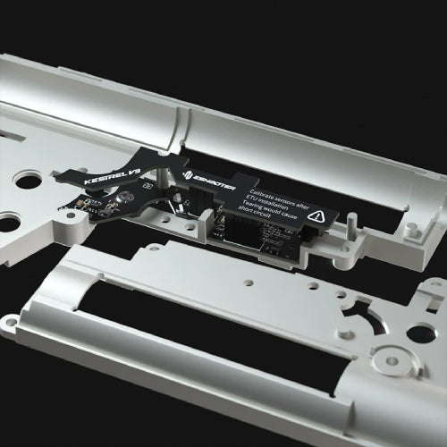 Designed with durability and ease of use in mind, the Kestrel V3 features a compact top plate housing electronic components for swift maintenance, a sturdy cable connecting to powerful motors and batteries, and a tactile selector button for mode changes. The optical sensor guarantees smooth, reliable trigger checks, and the device’s smart features—such as sleep mode and cycle detection—maximize battery life and protect your gear.