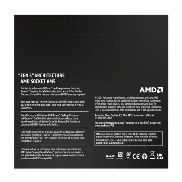 Elevate your computing to new heights with the AMD Ryzen™ 9000 Series CPUs. These processors represent the pinnacle of desktop performance, engineered for those who demand the best from their systems. With integrated AMD Radeon™ Graphics, enjoy breathtaking visuals and seamless gameplay without the need for a separate graphics card, making these CPUs ideal for gamers and creators alike.