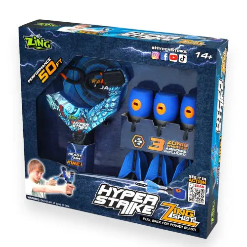 Ideal for indoors or outdoors, HyperStrike Zing Shot inspires active play, sharpens aim, and brings family and friends together for hours of action-packed entertainment.
