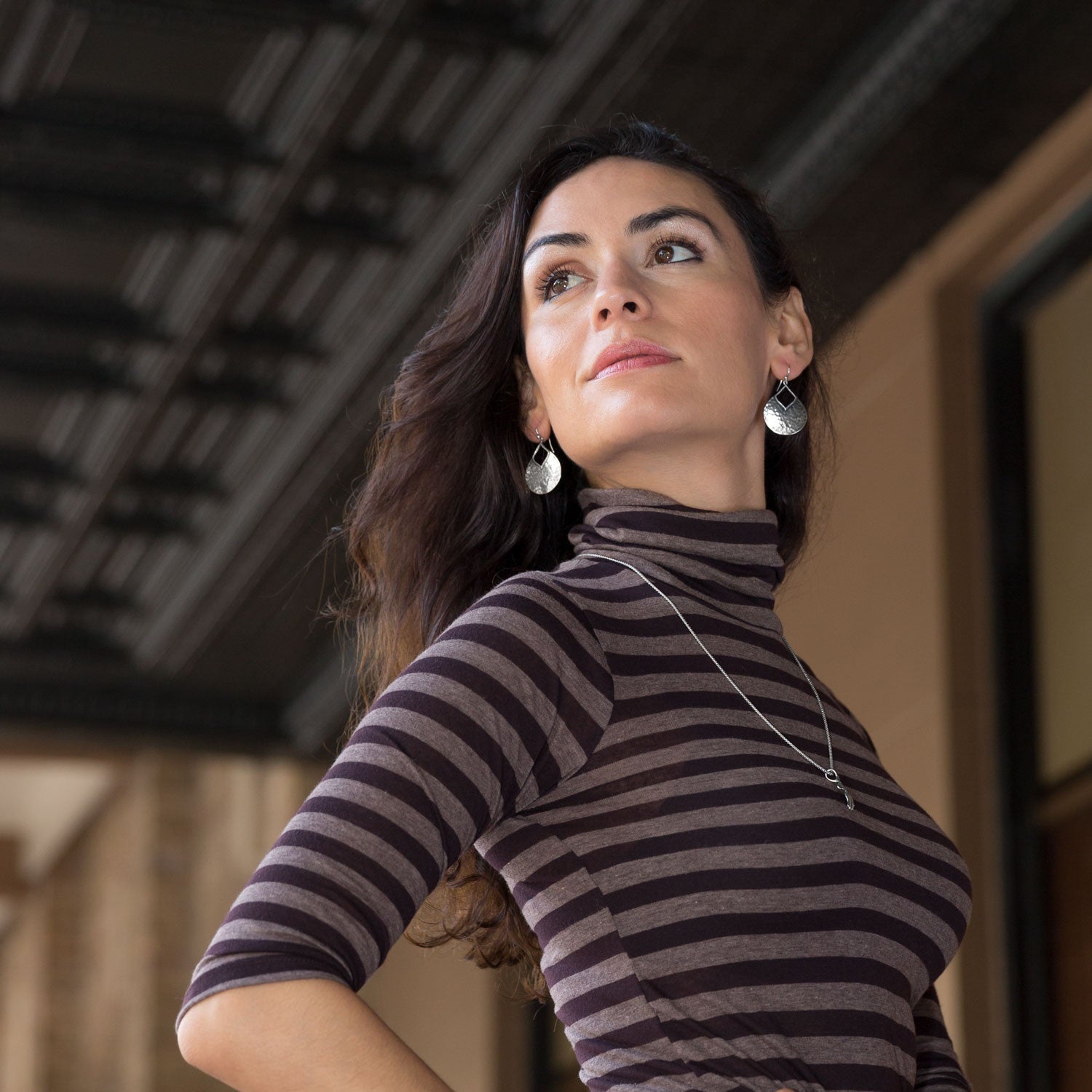 Oxidized, hammered sterling silver cutout pear shape French wire earrings. The earrings measure 26mm x 43mm.