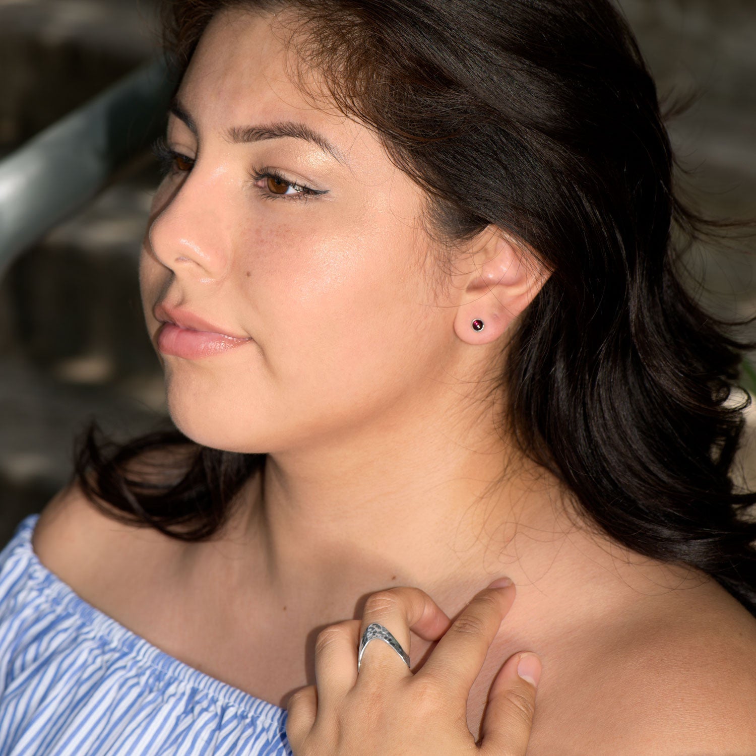 Hammered sterling silver "V" design ring. The band width graduates from 3mm to 7mm.