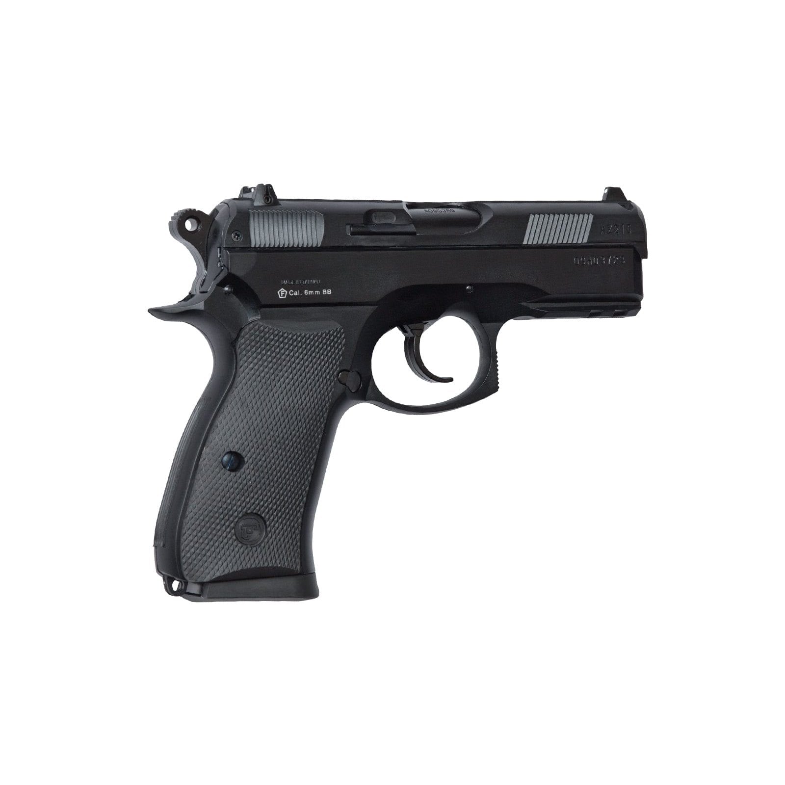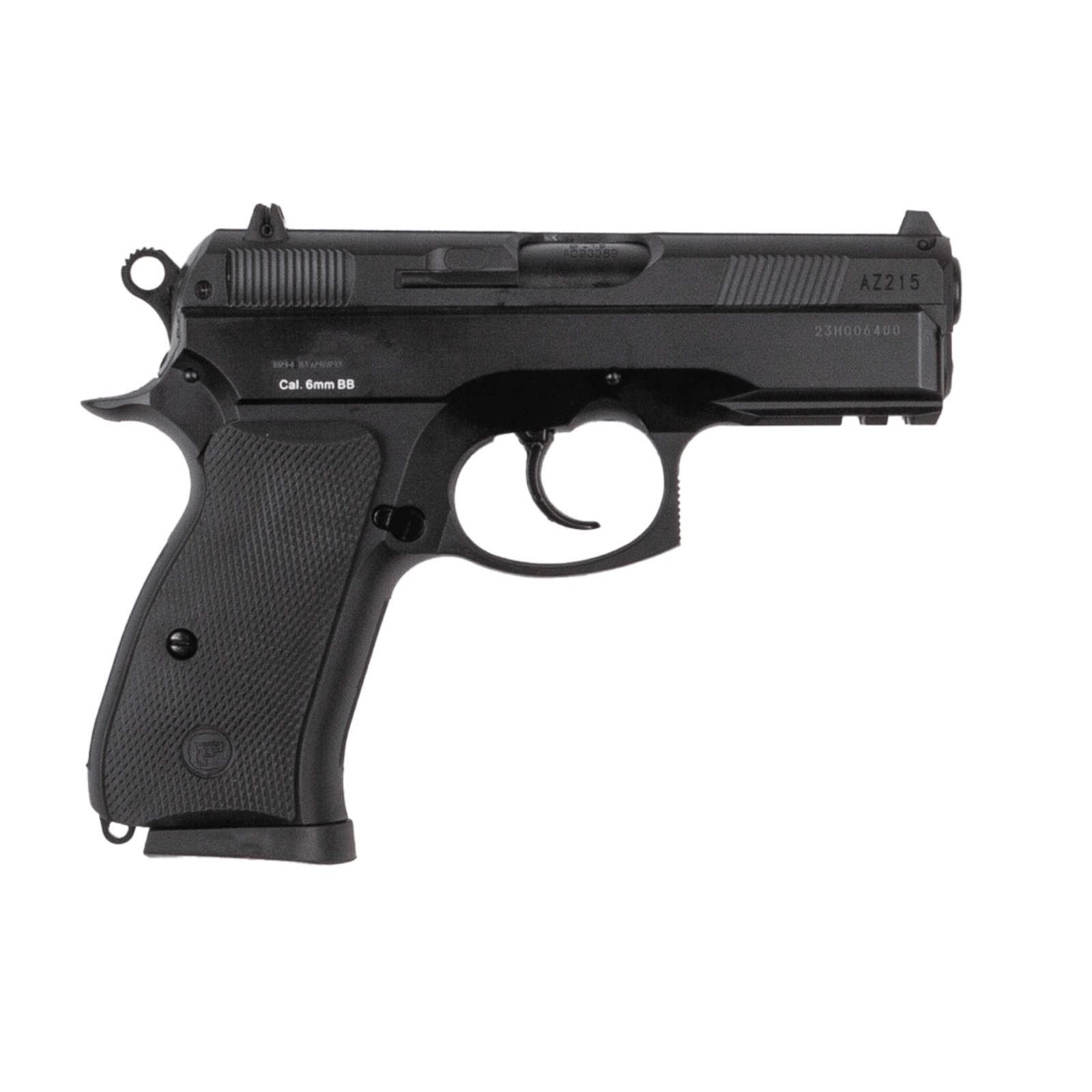 A black version of the semi automatic 4.5mm (.177) CZ 75D Compact, licensed by Česká Zbrojovka, Czech Republic. The airgun has authentic CZ markings and unique serial number. The front waiver rails give you the opportunity to mount laser and flashlight. The rear sight is adjustable to secure better accuracy. The magazine holds 17 BB’s and also stores the 12g CO2 cartridges. The Magazine is protected with a rubber base, so it doesn’t break easily if it is dropped. The grip is rubber patted and with the high rise beavertail, it secures a firm grip with perfect control. The pistol comes with a tool allowing you to change the CO2 cartridges in the magazine and unscrew the front to unveil the silencer threads.