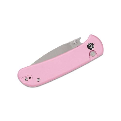 Comfort and control come standard. The lightweight pink aluminum handle, just thick enough for a reassuring grip, features a natural flared guard to keep your fingers safe under pressure. Weighing in at a mere 2.82 ounces and folding down to a compact 4.21″, the Qubit disappears in your pocket until duty calls.