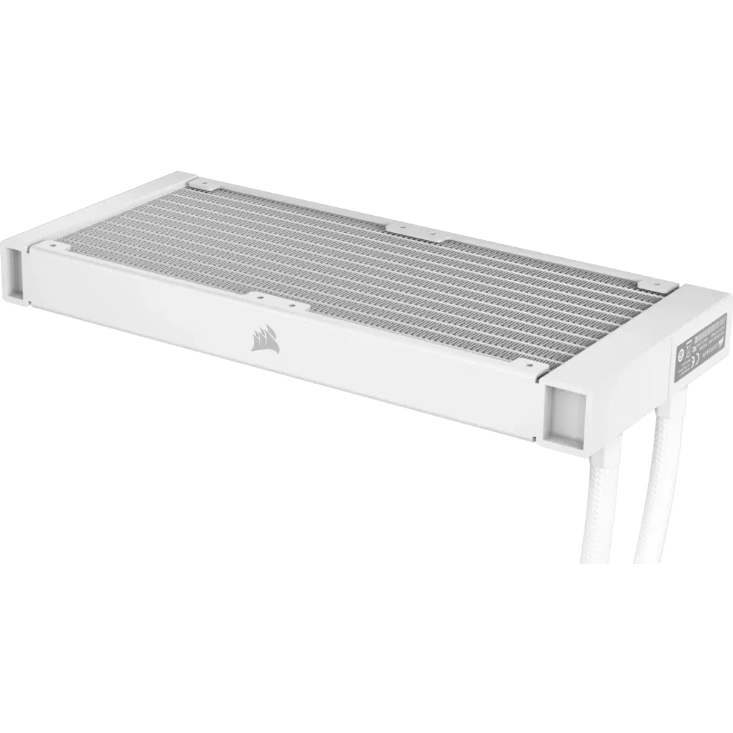 Corsair H100I Elite. Type: All-in-one liquid cooler, Fan diameter: 12 cm, Rotational speed (min): 400 RPM, Rotational speed (max): 1850 RPM, Noise level (low speed): 5 dB, Noise level (high speed): 28.9 dB, Maximum airflow: 59.1 cfm, Minimum air pressure: 0.09 mmH2O, Maximum air pressure: 1.93 mmH2O. Product colour: White