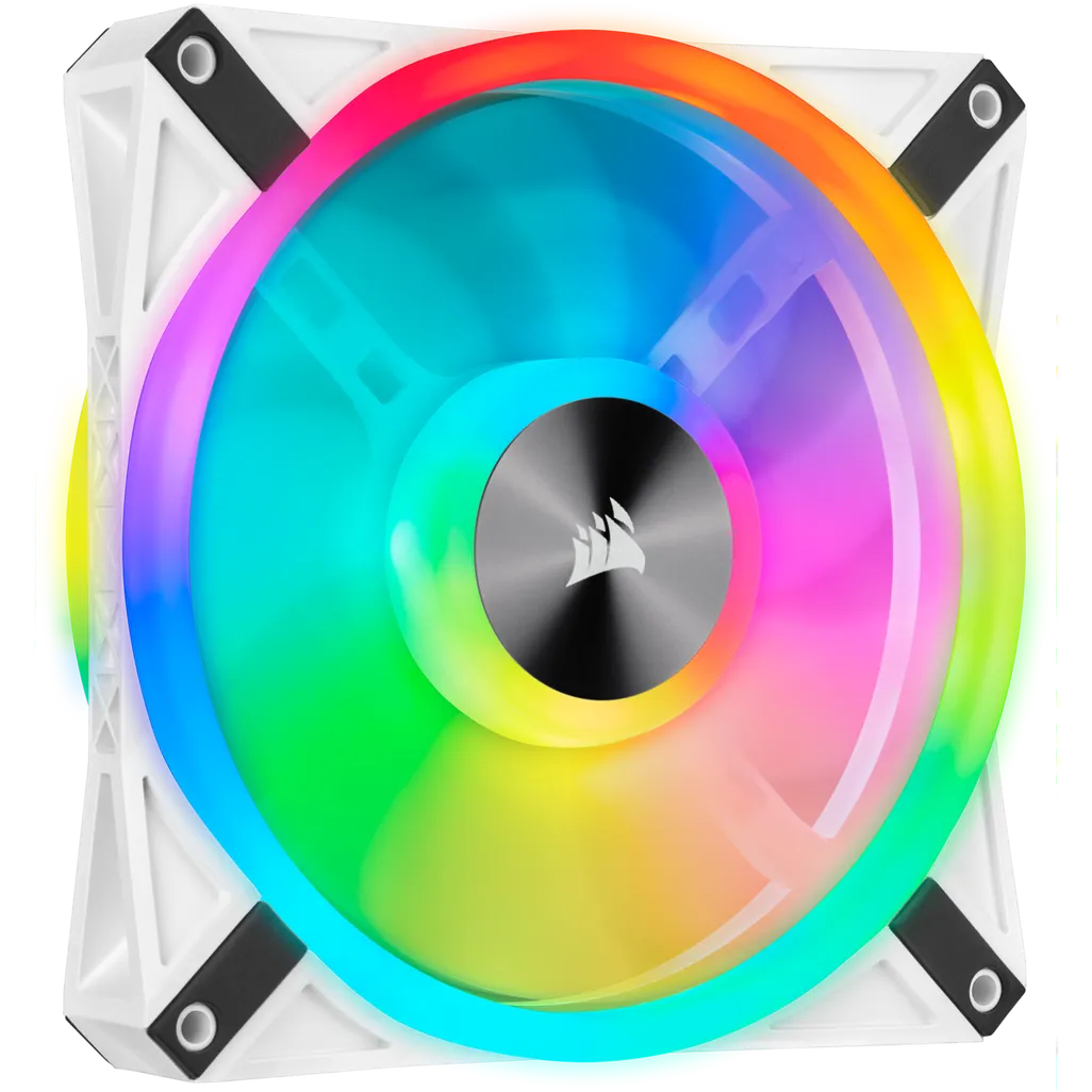 Corsair iCUE QL140. Type: Fan, Fan diameter: 14 cm, Rotational speed (min): 550 RPM, Rotational speed (max): 1250 RPM, Noise level (high speed): 26 dB, Maximum airflow: 50.2 cfm, Bearing type: Hydraulic. Voltage: 6 - 13.2 V. Width: 140 mm, Depth: 25 mm. Product colour: White