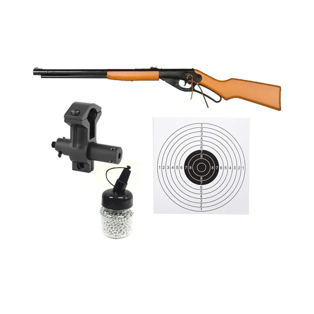 The Daisy Red Ryder Model 1938 4.5mm BB Rifle Combo is a timeless classic that has been trusted for generations. Known for its iconic Western-style design and smooth lever-action operation, this rifle is perfect for young shooters learning proper gun handling as well as adults who appreciate nostalgic, reliable backyard plinking. Daisy’s craftsmanship ensures safe, enjoyable, and consistent shooting fun.