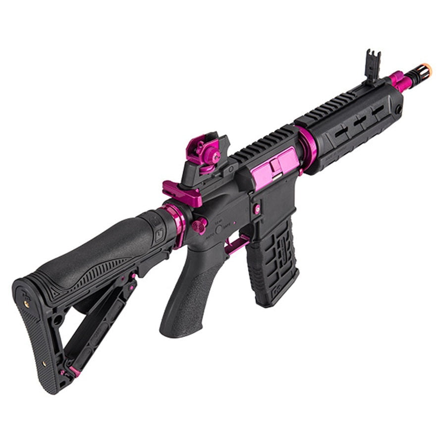 The G&G GR4 G26 Femme Fatale ERG Airsoft Rifle redefines what it means to combine beauty and performance. With its striking Pink/Black Splash (PBB) finish, this electric recoil rifle isn’t just a showpiece—it’s built for serious action. Whether you’re competing or training, the GR4 G26 provides a realistic shooting experience through its advanced Electronic Recoil System, giving each shot the satisfying feedback of recoil simulation.