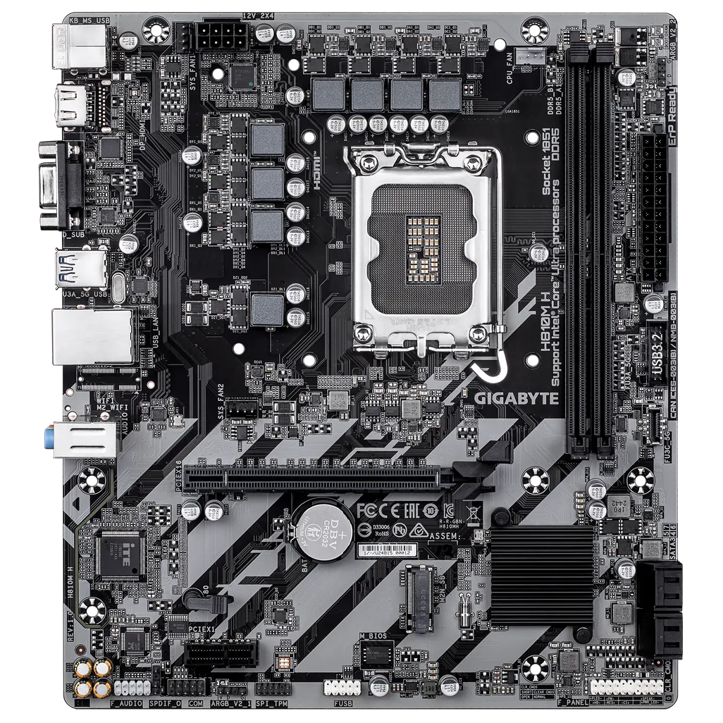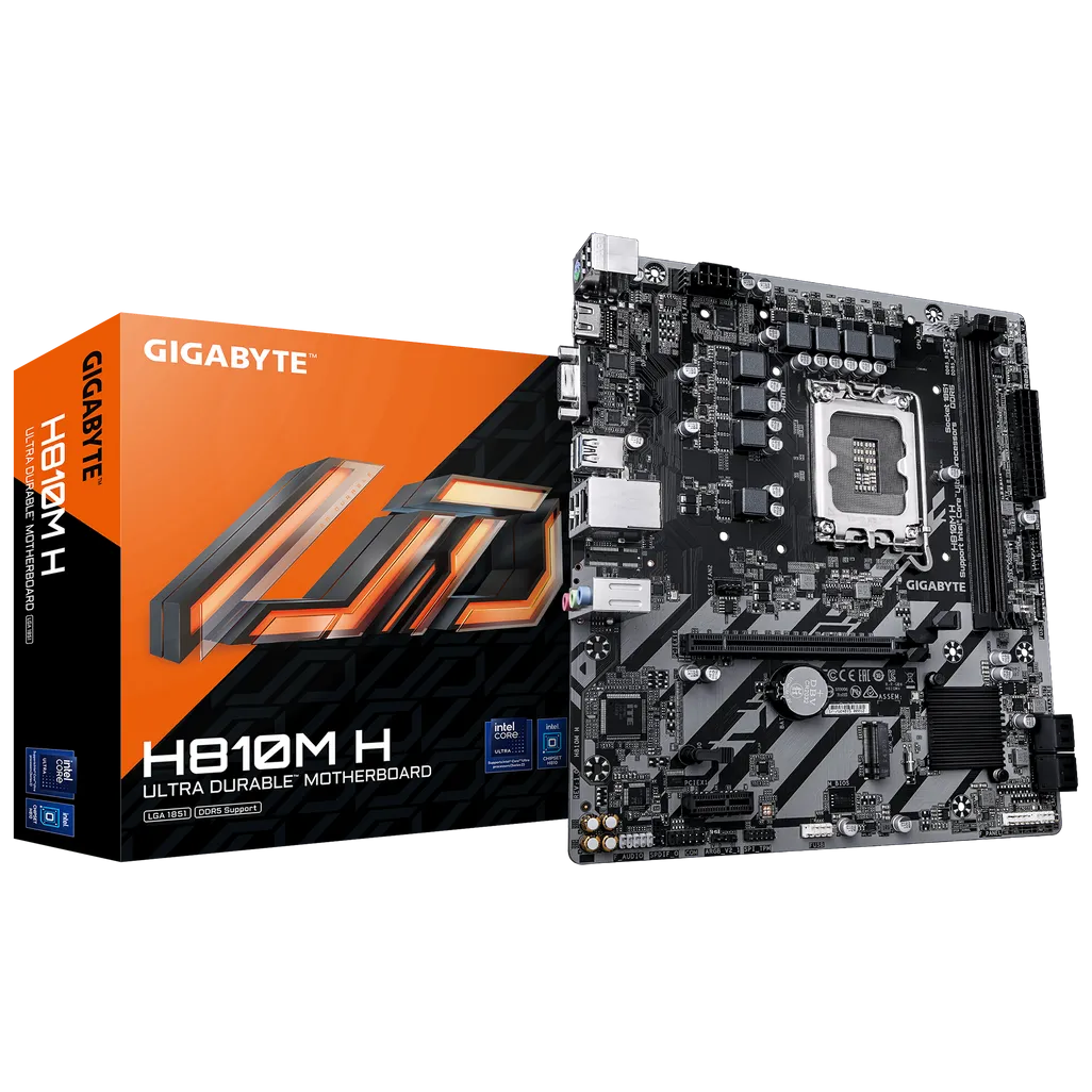 The GIGABYTE Intel® H810 Chipset Motherboard is a high-performance platform designed for Intel LGA 1851 processors. Ideal for gamers, content creators, and PC enthusiasts, it combines reliability, versatile connectivity, and robust build quality in a compact micro-ATX form factor.