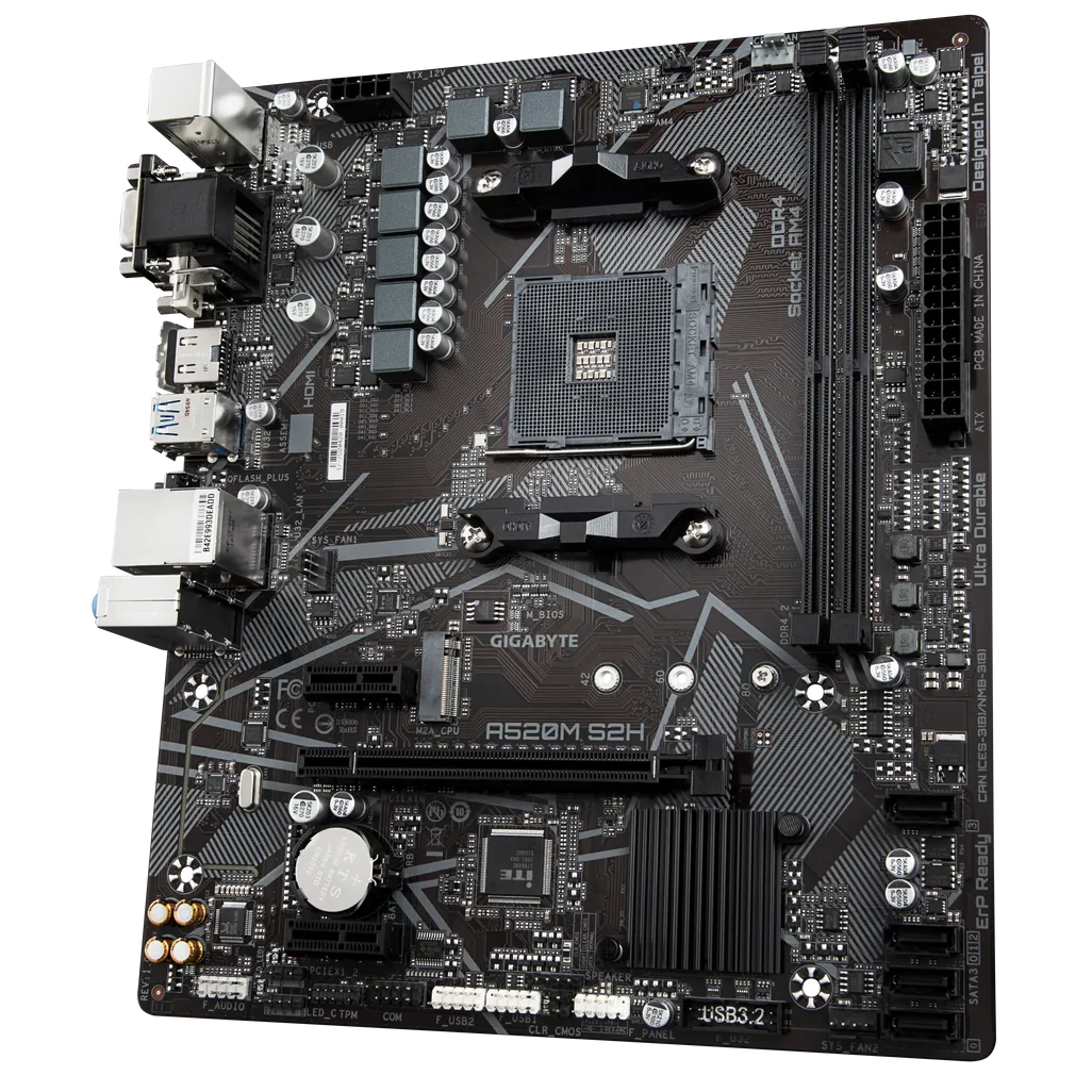 Durable and feature-rich, the GIGABYTE A520M-S2H motherboard is perfect for users seeking a reliable AMD platform for building or upgrading desktop systems with modern Ryzen™ processors.