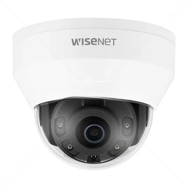 The Hanwha Q-Series Dome 5MP Camera provides exceptional 5MP high-resolution imaging, ensuring crisp and detailed video for superior indoor surveillance. Featuring a 3.2-10mm motorized varifocal lens, this camera allows for remote zoom and focus adjustments, providing customizable coverage to meet specific monitoring needs. With 20m infrared night vision, it guarantees clear visibility even in low-light conditions, ensuring reliable surveillance around the clock. The camera's sleek and low-profile dome design blends seamlessly into indoor environments, maintaining discretion. Additionally, True WDR, IP66 weatherproof rating, and H.265 & WiseStream II compression work together to deliver optimal performance, clarity, and efficient video storage. This camera is easy to install, making it a convenient solution for various indoor surveillance setups.