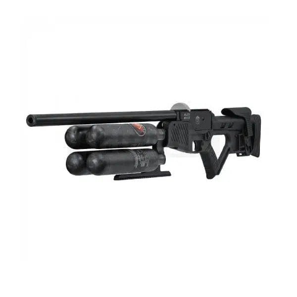 Available in .22 caliber, that can produce up to 53 FPE and fire up to 1,150 FPS. The Blitz air rifle has more than enough capacity to take down small to medium-sized games. You can empty a full mag in less than 1 SECOND, and the Blitz has a cyclical rate of 1,000 rounds per minute. With its large capacity carbon fiber air tank, it can provide over 100 shots at optimal velocity. The Blitz is our #1 selling airgun!