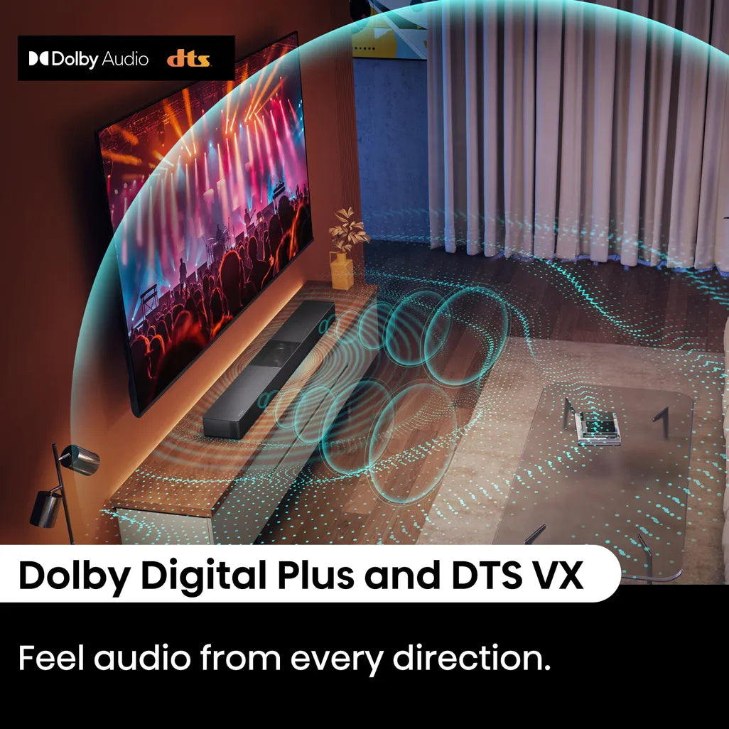 •Wireless Subwoofer: Conveniently place the subwoofer anywhere in the room for optimal sound.