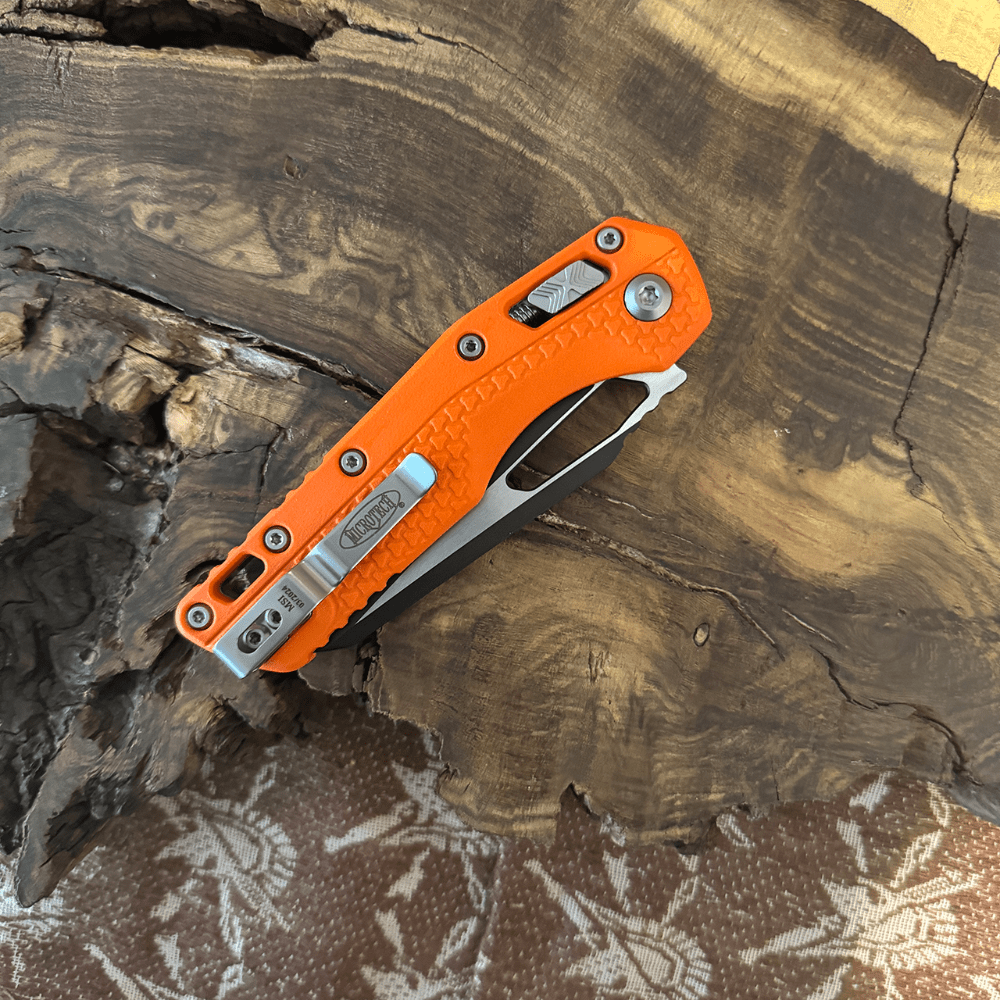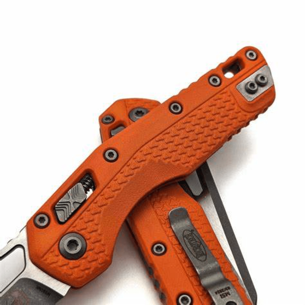 The Microtech MSI® S/E Tri-Grip (210T-1PMOR) is a high-performance automatic knife designed for precision and durability. Featuring a striking orange polymer handle with Tri-Grip texture, this knife ensures a secure, non-slip hold in any condition. The single-edge, partially serrated blade delivers versatility for cutting, slicing, and tactical applications, making it ideal for outdoor enthusiasts, first responders, and EDC users.