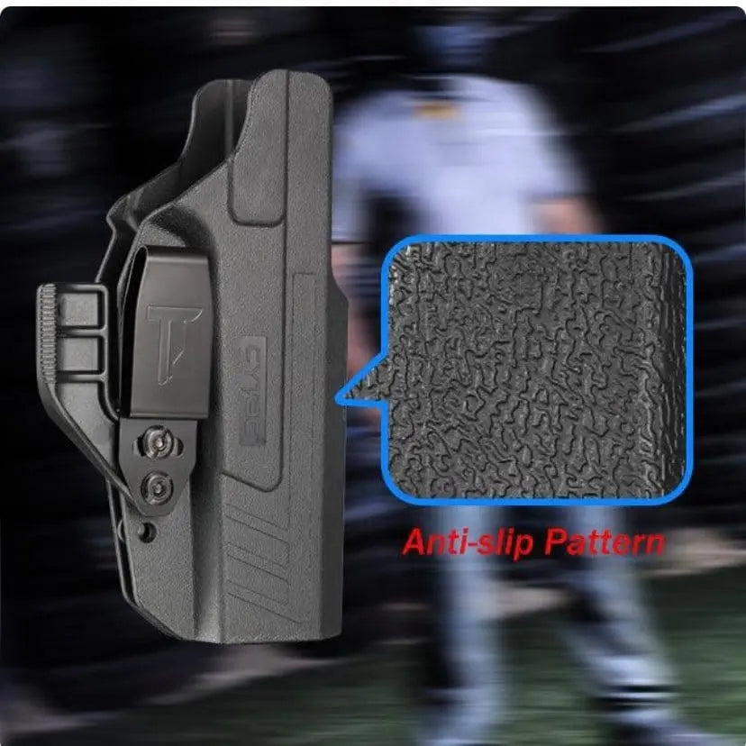With adjustable cant (0-15°), customizable retention, and a full-length sweat guard, this holster provides the perfect balance of comfort, security, and quick draw efficiency. The anti-slip texture enhances stability, while the smooth edges and interior protect both the firearm and the user from discomfort. Built from durable materials for long-lasting performance, the P07/09 Cytac I-Mini Guard IWB Holster is the ideal choice for personal defense and professional use.