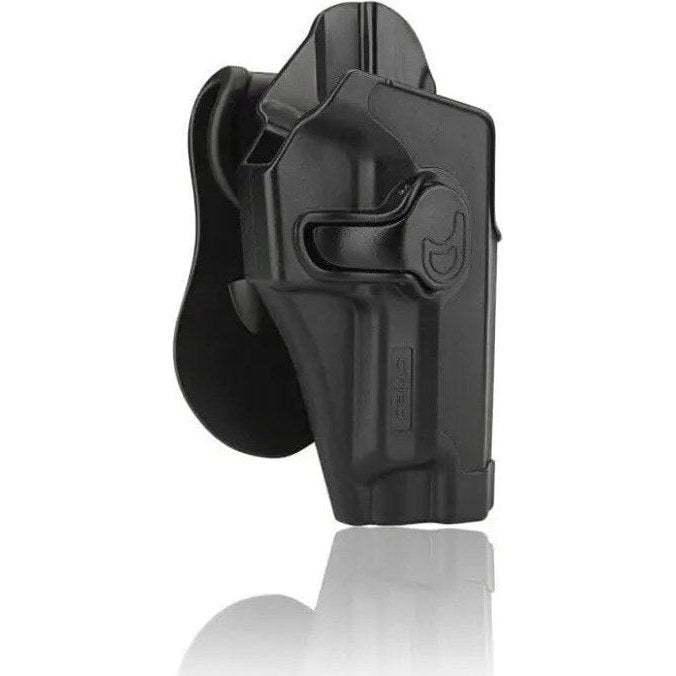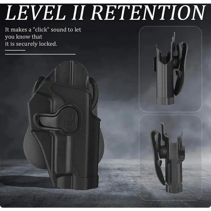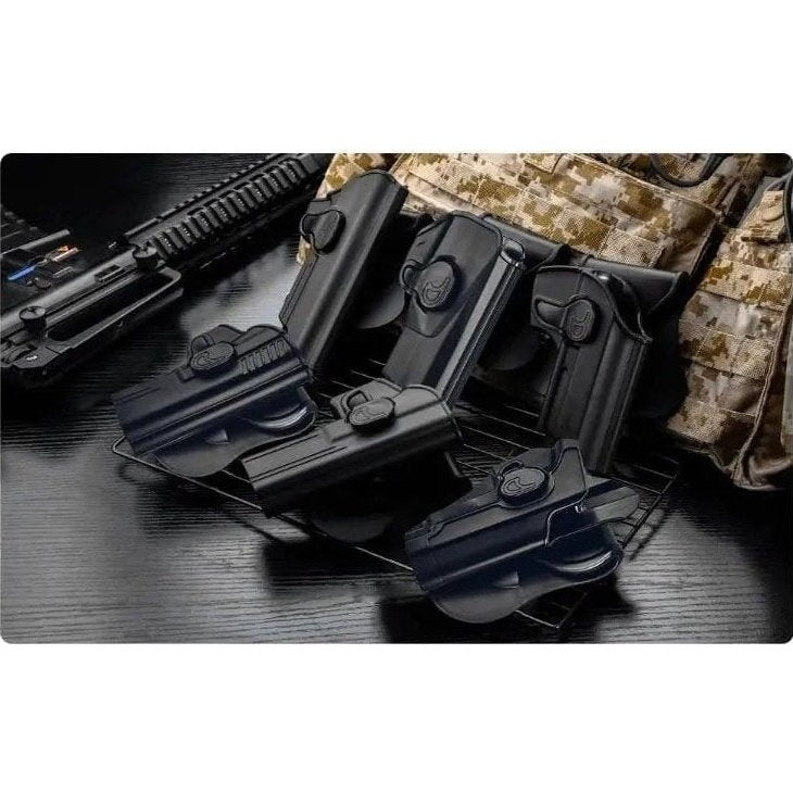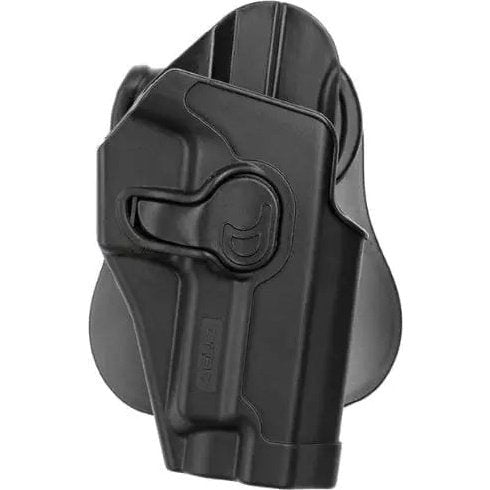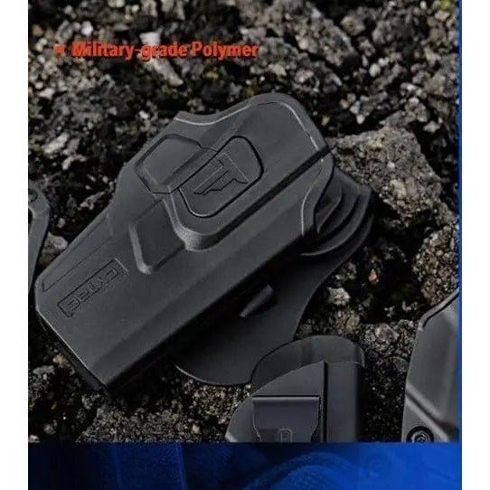 Constructed with military-grade polymer, this holster offers superior durability, weather resistance, and ease of maintenance. The paddle attachment allows for 360-degree rotation, letting you wear the holster in any position for maximum comfort. Its lightweight design, along with the ability to fit duty belts and web belts, makes this holster versatile and ready for a variety of situations, from daily concealed carry to law enforcement duties. CYTAC's R-DEFENDER OWB Holster is built to withstand extreme conditions, making it a perfect solution for both civilian and off-duty officers looking for a reliable, secure, and convenient holster.