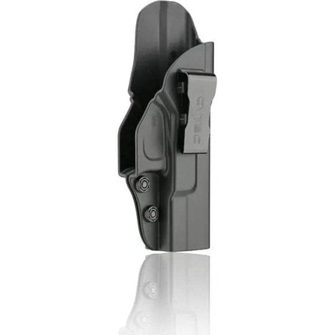 Crafted from high-grade polymer, the holster is durable and lightweight, ensuring that it doesn't add unnecessary bulk to your setup. It features an adjustable gun retention system, which ensures a snug fit for your firearm. The no autolock feature and open-top design allow for a quick, easy draw, making it perfect for both everyday carry and tactical situations. The skin-friendly, new generation paddle provides added comfort while remaining easy to attach and detach from your belt.