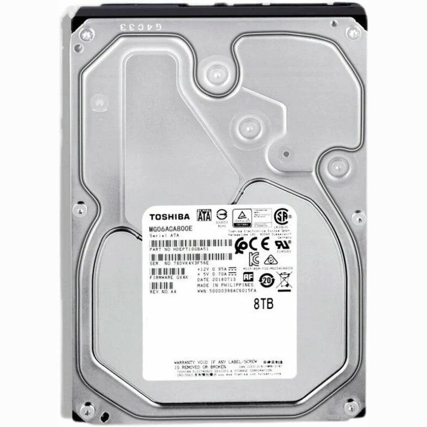 Toshiba Enterprise SATA Hard Drive Disk - 8TB Capacity, 3.5 Inch form factor, 7200 rpm rotation speed, 256MiB Buffer size, 248 MiB/s Data transfer speed, 5.61W Power consumption, 200 000h MTTF/MTBF, 720g weight, Retail Box, 4 Years Warranty