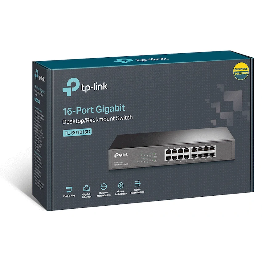 The TL-SG1016D Gigabit Ethernet Switch provides you with a high-performance, low-cost, easy-to-use, seamless and standard upgrade to improve old network to 1000Mbps network. All 16 ports support auto MDI/MDIX, no need to worry about the cable type, simply plug and play. Moreover, with the innovative energy-efficient technology, the TL-SG1016D can save power consumption, making it an eco-friendly solution for your business network.