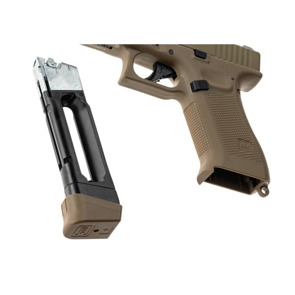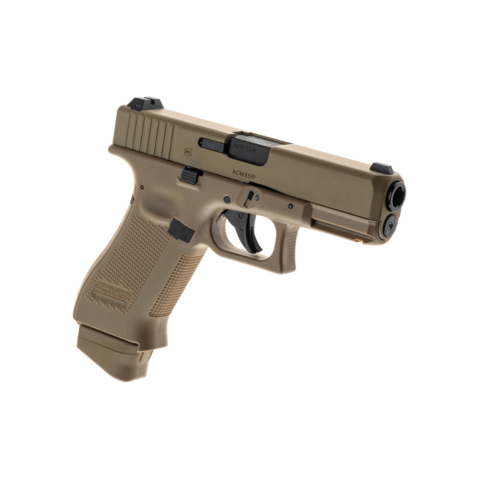 The Umarex Glock 19X 6mm CO2 airsoft pistol is a realistic, officially licensed Glock replica that blends a full‑size frame with a compact slide for familiar ergonomics and handling. Finished in coyote tan, it features a metal slide and a durable polymer frame for authentic weight distribution and durability on the field.