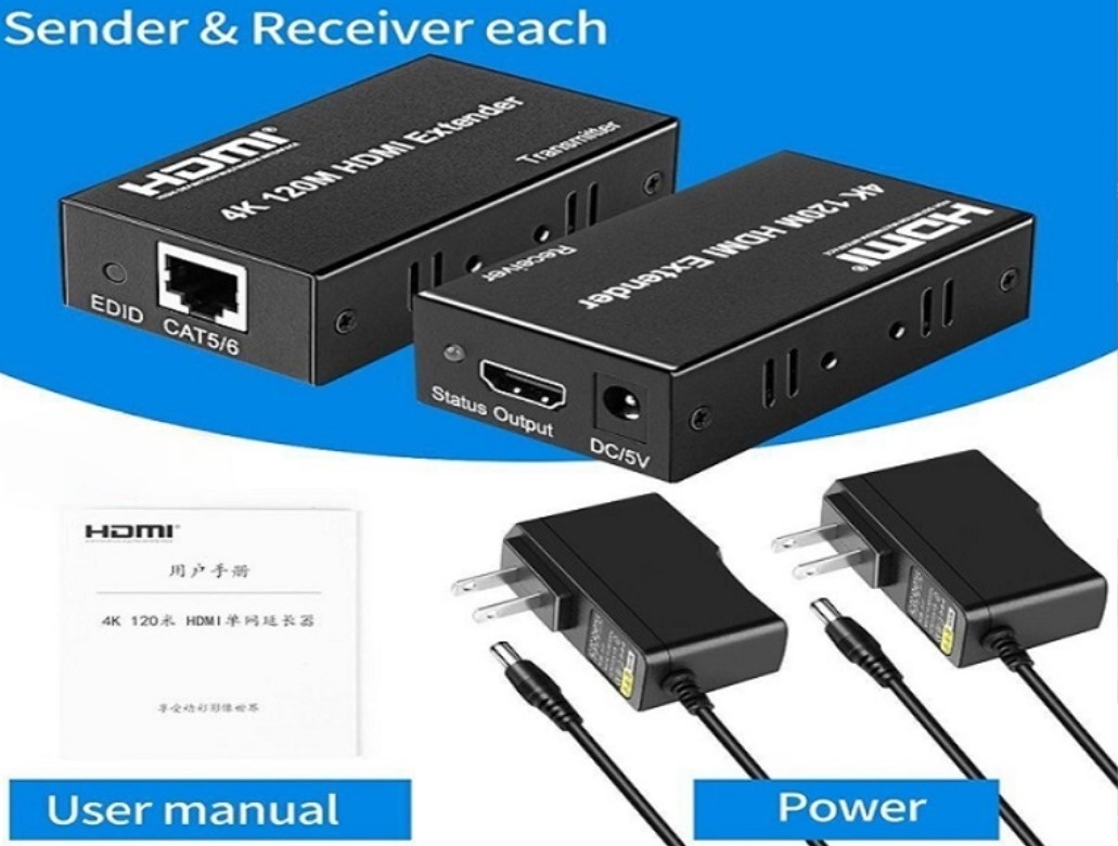 UniQue HDMI Extender - 120 Meters Between Transmitter And Receiver, Cat5e Or Cat6 Signal Transmission, 3840*2160p Resolution, 30Hz Refresh Rate, Support 3.4 x 3Gbps Data Rate, Up To 340MHz TMD Sclock, Low Power Consumption, Power Supply Included, Retail Box, 6 Months Warranty.
