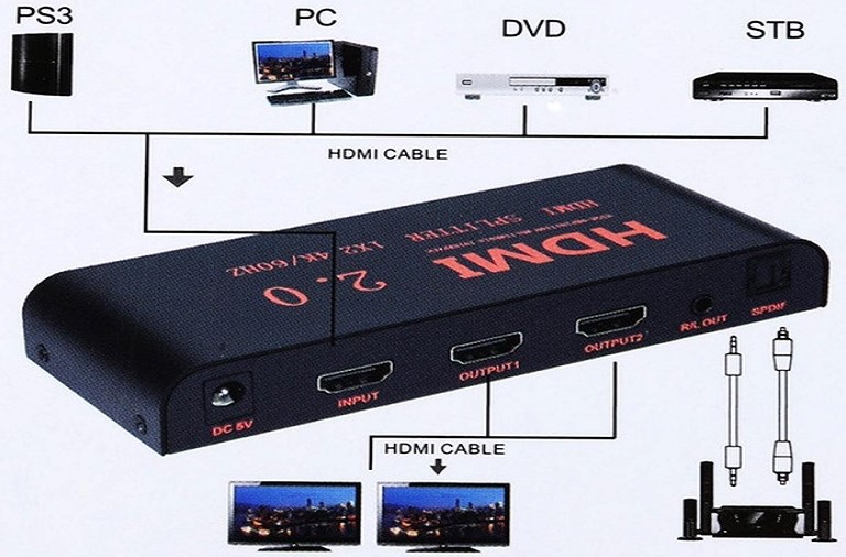 UniQue Metal HDMI Splitter - 1 Input HDMI Port, 2 Display Output HDMI Port, 4K Display, 3840x2160 Display Resolution, Up To 6GHz Video Bandwidth, 60/80Hz Vertical Frequency Range, 4 Device Port LED, Power ON/OFF Button, 5W Power Consumption, Retail Box, 3 Months Warranty