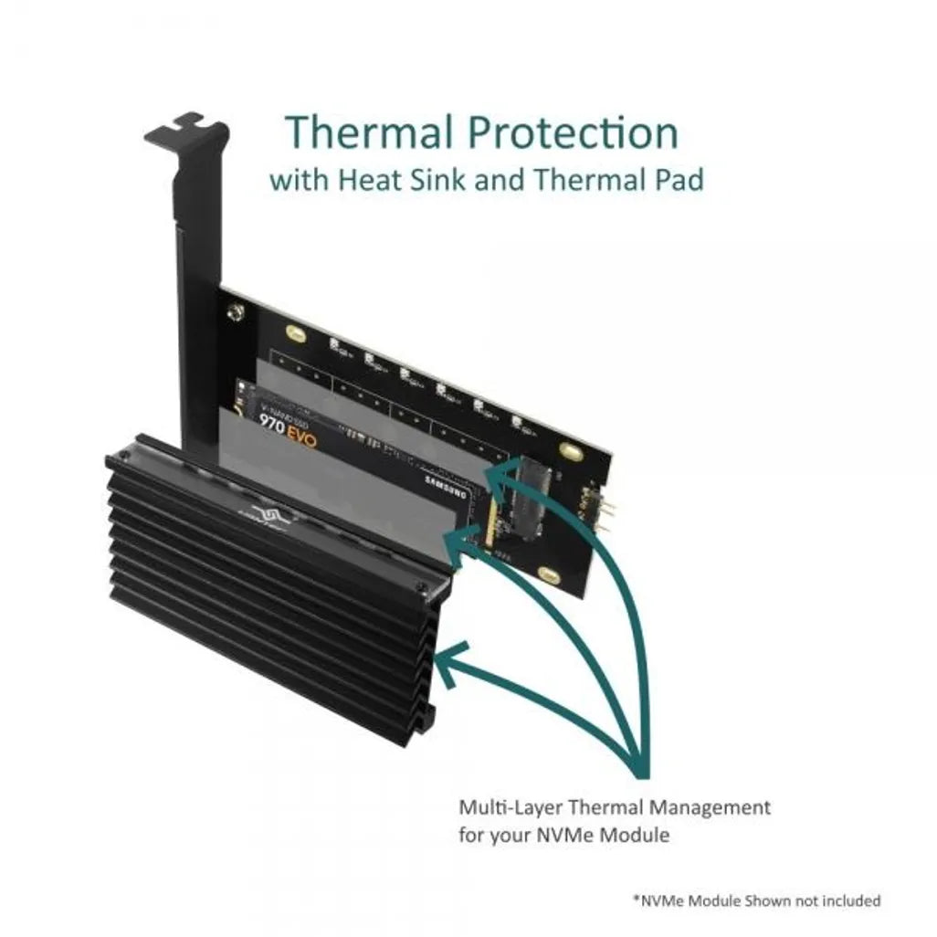 The VANTEC M.2 NVMe SSD PCIe x4 Adapter is a high-performance expansion card designed to install an M.2 NVMe SSD into a desktop or workstation with a PCIe x4 slot, delivering ultra-fast storage speeds and enhanced system performance. Perfect for gamers, content creators, and professionals, it combines speed, style, and reliability.