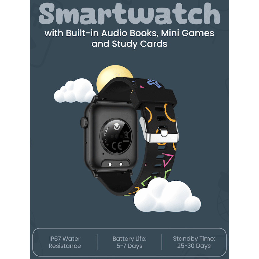 Keep kids entertained, active, and learning with the Volkano Fizz Kids Watch. Designed with both fun and functionality in mind, this smartwatch comes loaded with 11 audio books, 17 mini games, and 8 study cards to spark imagination and encourage learning.It's more than just play-the Fizz also helps kids stay active and healthy with an activity tracker and heart rate monitoring. Parents can feel at ease knowing it's built tough with an IP67 water resistance rating, making it safe from splashes, spills, and playtime adventures.Stylish, durable, and packed with features, the Volkano Fizz Kids Watch is the perfect balance of fun, education, and fitness tracking for growing minds.