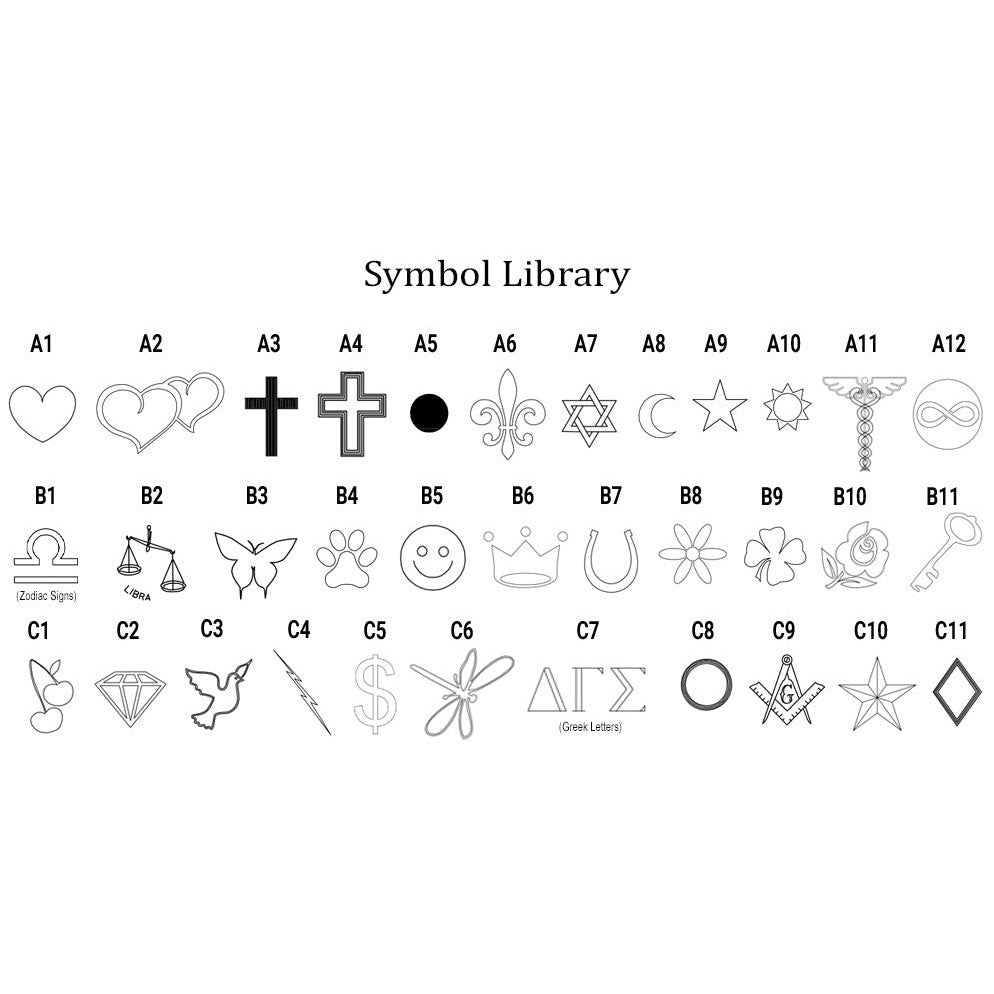 Customizing with a symbol? Please use code from symbol library to indicate placement of the symbol. Ex: Rose