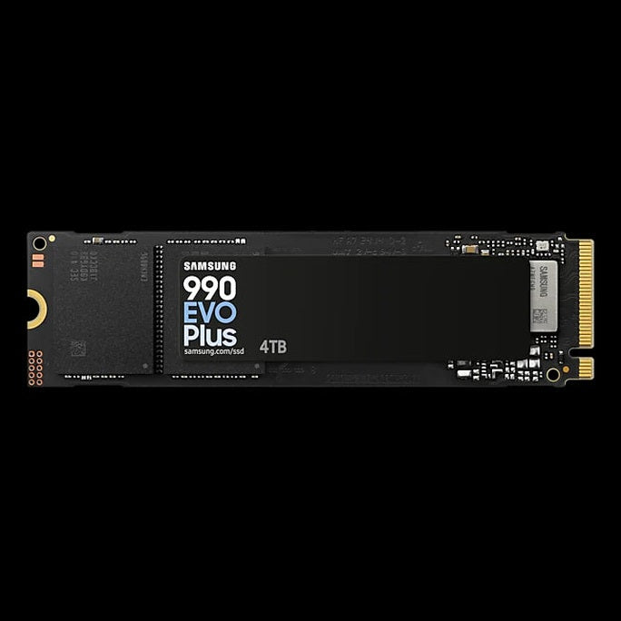 SAMSUNG 990 Evo Plus 4 TB NVMe SSD - Read Speed up to 7250 MB/s  Write Speed to up 6300 MB/s  Random Read up to 1000000 IOPS  Random Write up to 1350000 IOPS  PCIe® 4.0 x4 / 5.0 x2 NVMe 2.0  V-NAND TLC/ In-house controller/ HMB(Host Memory Buffer)
